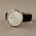 This Danish Design watch has a case made of stainless steel with a diameter of 39 mm and is fitted with a leather band. Inside the case lies a Miyota movement and the watch features a Mineral crystal.