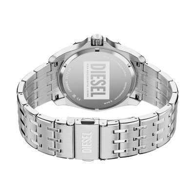 This Diesel watch has a case made of stainless steel with a diameter of 44 mm and is fitted with a stainless steel band. Inside the case lies a Miyota movement and the watch features a Mineral crystal.