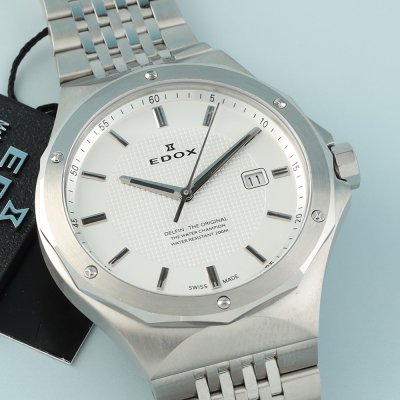 This Edox watch has a case made of stainless steel with a diameter of 43 mm and is fitted with a metal band. Inside the case lies a Ronda movement and the watch features a Sapphire crystal.