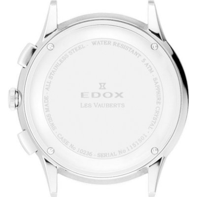 This Edox watch has a case made of stainless steel with a diameter of 42 mm and is fitted with a leather band. Inside the case lies a Ronda movement and the watch features a Sapphire crystal.