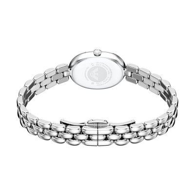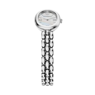 This Emporio Armani watch has a case made of stainless steel with a diameter of 22 mm and is fitted with a stainless steel band. Inside the case lies a Seiko movement and the watch features a Mineral crystal.