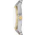 This Emporio Armani watch has a case made of stainless steel with a diameter of 41 mm and is fitted with a stainless steel band. Inside the case lies a Miyota movement and the watch features a Mineral crystal.