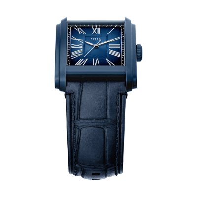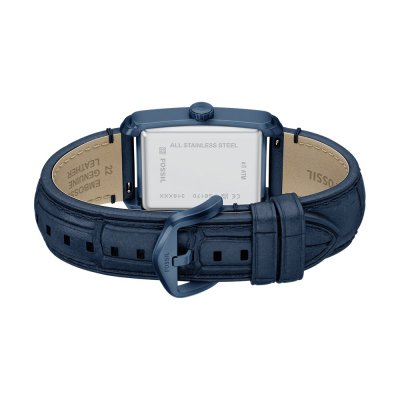 This Fossil watch has a case made of stainless steel with a diameter of 30 mm and is fitted with a leather band. Inside the case lies a Miyota movement and the watch features a Mineral crystal.