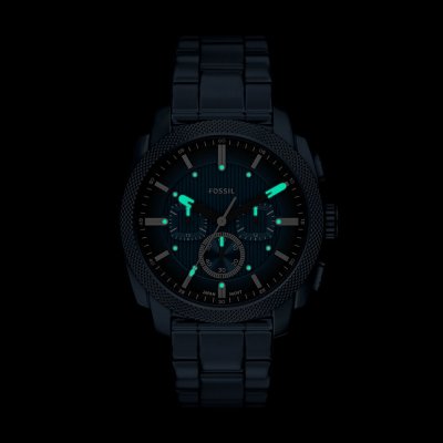 This Fossil watch has a case made of stainless steel with a diameter of 44 mm and is fitted with a stainless steel band. Inside the case lies a Miyota movement and the watch features a Mineral crystal.