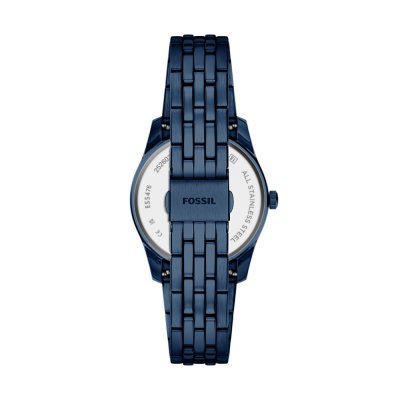 This Fossil watch has a case made of stainless steel with a diameter of 34 mm and is fitted with a stainless steel band. Inside the case lies a Seiko Instruments Inc. movement and the watch features a Mineral crystal.