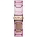 This Furla watch has a case made of Stainless steel and resin with a diameter of 34 mm and is fitted with a Stainless steel and resin band. Inside the case lies a Miyota movement and the watch features a Mineral crystal.