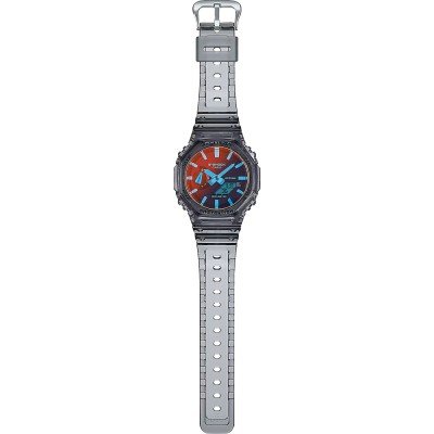 This G-Shock watch has a case made of Carbon reinforced resin with a diameter of 45.4 mm and is fitted with a Resin band. Inside the case lies a Casio movement and the watch features a Mineral crystal.
