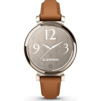 This Garmin watch has a case made of Aluminum with a diameter of 35 mm and is fitted with a leather band. Inside the case lies a Garmin movement and the watch features a Corning Gorilla Glass 3 crystal.