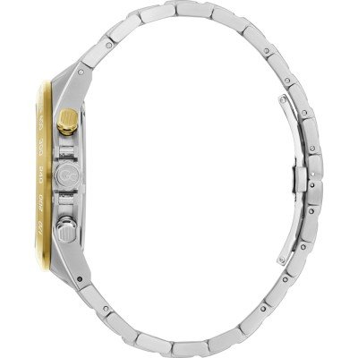This GC watch has a case made of stainless steel with a diameter of 44 mm and is fitted with a metal band. Inside the case lies a Ronda movement and the watch features a Sapphire coated mineral crystal.