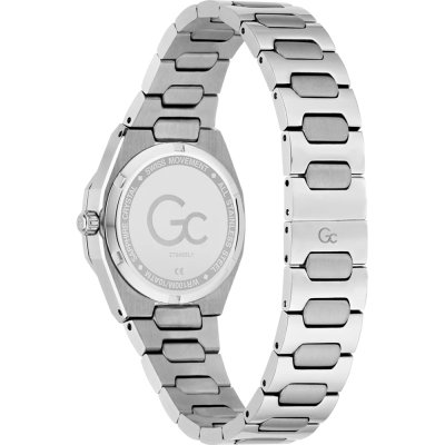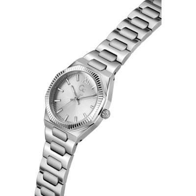 This GC watch has a case made of stainless steel with a diameter of 30 mm and is fitted with a stainless steel band. Inside the case lies a Ronda movement and the watch features a Sapphire crystal.