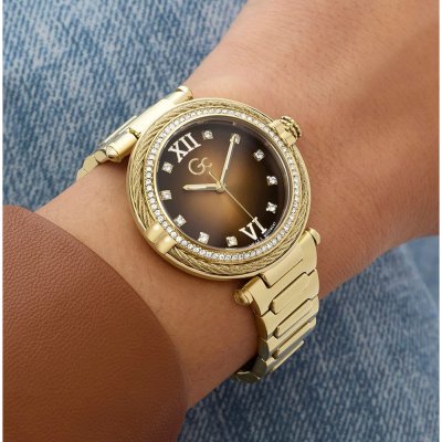 This GC watch has a case made of stainless steel with a diameter of 36.5 mm and is fitted with a stainless steel band. Inside the case lies a Ronda movement and the watch features a Sapphire coated mineral crystal.