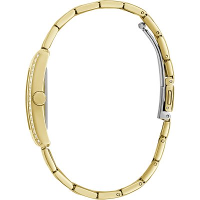 This Guess watch has a case made of stainless steel with a diameter of 27 mm and is fitted with a stainless steel band. Inside the case lies a Seiko movement and the watch features a Mineral crystal.