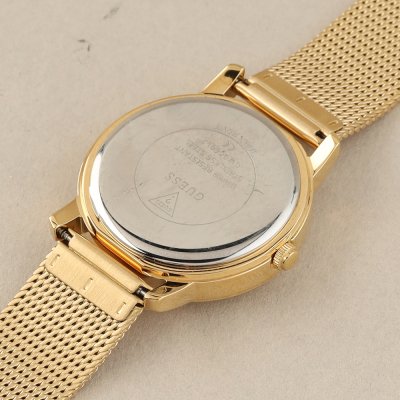 This Guess watch has a case made of stainless steel with a diameter of 28 mm and is fitted with a stainless steel band. Inside the case lies a Seiko movement and the watch features a Mineral crystal.