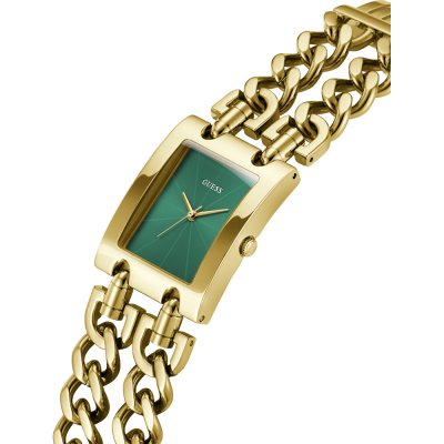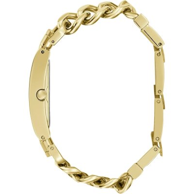 This Guess watch has a case made of stainless steel with a diameter of 28 mm and is fitted with a stainless steel band. Inside the case lies a Seiko movement and the watch features a Mineral crystal.