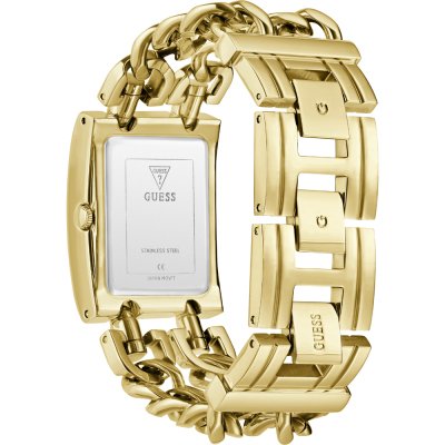 This Guess watch has a case made of stainless steel with a diameter of 28 mm and is fitted with a metal band. Inside the case lies a Seiko movement and the watch features a Mineral crystal.