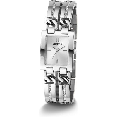 This Guess watch has a case made of stainless steel with a diameter of 24 mm and is fitted with a stainless steel band. Inside the case lies a Seiko movement and the watch features a Mineral crystal.