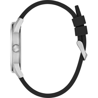 This Guess watch has a case made of stainless steel with a diameter of 42 mm and is fitted with a rubber band. Inside the case lies a Seiko movement and the watch features a Mineral crystal.