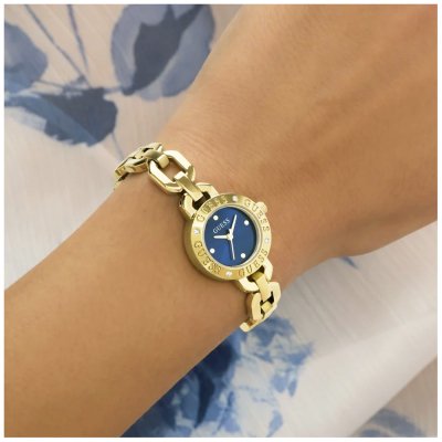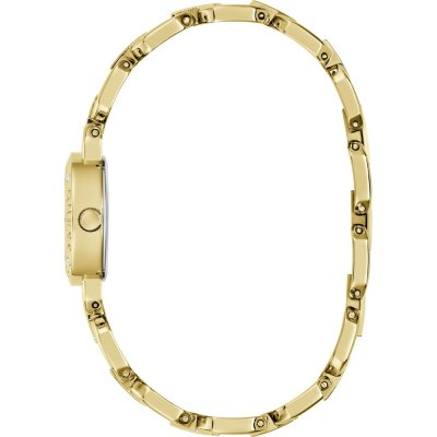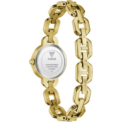 This Guess watch has a case made of stainless steel with a diameter of 23 mm and is fitted with a stainless steel band. Inside the case lies a Seiko movement and the watch features a Mineral crystal.