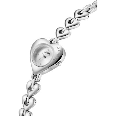 This Guess watch has a case made of stainless steel with a diameter of 28 mm and is fitted with a stainless steel band. Inside the case lies a Seiko movement and the watch features a Mineral crystal.