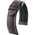 This strap is made from durable, full-grain, Italian calf leather with a perforated canvas look. The colored Hirsch Premium Caoutchouc kernel creates a comfortable fit and supreme moisture regulation.