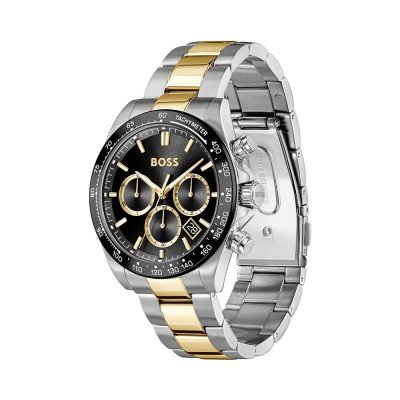 This Hugo Boss watch has a case made of stainless steel with a diameter of 43 mm and is fitted with a stainless steel band. Inside the case lies a Seiko Instruments Inc. movement and the watch features a Mineral crystal.