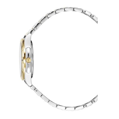 This Jacques du Manoir watch has a case made of stainless steel with a diameter of 29 mm and is fitted with a stainless steel band. Inside the case lies a Ronda movement and the watch features a Mineral crystal.