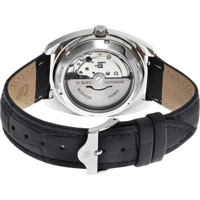 This LIP watch has a case made of stainless steel with a diameter of 35 mm and is fitted with a leather band. Inside the case lies a Miyota movement and the watch features a Single anti-reflective sapphire crystal.