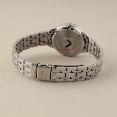 This Lorus watch has a case made of stainless steel with a diameter of 30 mm and is fitted with a stainless steel band. Inside the case lies a Seiko Instruments Inc. movement and the watch features a Hardlex crystal crystal.