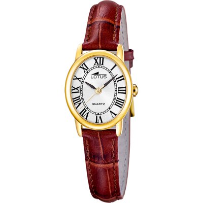 This Lotus watch has a case made of stainless steel with a diameter of 23 mm and is fitted with a leather band. Inside the case lies a Miyota movement and the watch features a Mineral crystal.