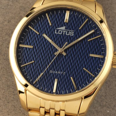 This Lotus watch has a case made of stainless steel with a diameter of 42 mm and is fitted with a stainless steel band. Inside the case lies a Miyota movement and the watch features a Mineral crystal.