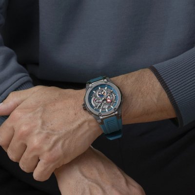 This Lotus watch has a case made of stainless steel with a diameter of 46 mm and is fitted with a rubber band. Inside the case lies a Miyota movement and the watch features a Mineral crystal.