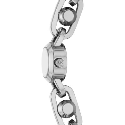 This Michael Kors watch has a case made of stainless steel with a diameter of 22 mm and is fitted with a stainless steel band. Inside the case lies a Ronda movement and the watch features a Mineral crystal.