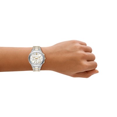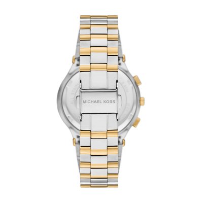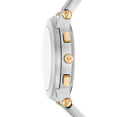 This Michael Kors watch has a case made of stainless steel with a diameter of 37 mm and is fitted with a stainless steel band. Inside the case lies a Miyota movement and the watch features a Mineral crystal.