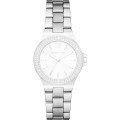 This Michael Kors watch strap is made of stainless steel and is attached to the watch by means of steel pins. The band has a width of 18 mm and is closed by means of a deployment clasp with push buttons. The strap has no straight mount which means that this strap is only suitable for the watches listed below.