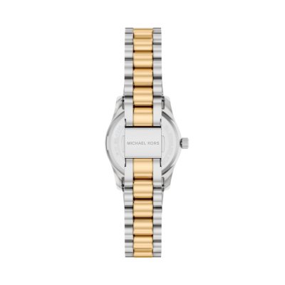 This Michael Kors watch has a case made of stainless steel with a diameter of 26 mm and is fitted with a stainless steel band. Inside the case lies a Seiko Instruments Inc. movement and the watch features a Mineral crystal.