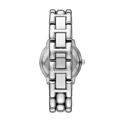 This Michael Kors watch has a case made of stainless steel with a diameter of 36 mm and is fitted with a stainless steel band. Inside the case lies a Seiko movement and the watch features a Mineral crystal.
