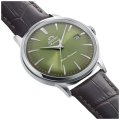 This Orient watch has a case made of stainless steel with a diameter of 40 mm and is fitted with a leather band. Inside the case lies a Orient movement and the watch features a Mineral crystal.