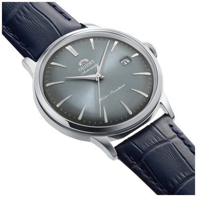 This Orient watch has a case made of stainless steel with a diameter of 40 mm and is fitted with a leather band. Inside the case lies a Orient movement and the watch features a Mineral crystal.
