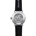 This Orient watch has a case made of stainless steel with a diameter of 41 mm and is fitted with a leather band. Inside the case lies a Orient movement and the watch features a Single anti-reflective sapphire crystal.