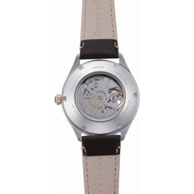 This Orient watch has a case made of stainless steel with a diameter of 40.5 mm and is fitted with a leather band. Inside the case lies a Seiko Instruments Inc. movement and the watch features a Mineral crystal.