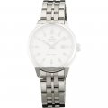 This Orient watch strap is made of stainless steel and is attached to the watch by means of pushpins. The band has a width of 16 mm and is closed by means of a deployment clasp with push buttons. The strap has no straight mount which means that this strap is only suitable for the watches listed below.