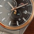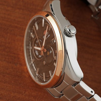 This Orient watch has a case made of stainless steel with a diameter of 41 mm and is fitted with a stainless steel band. Inside the case lies a Epson movement and the watch features a Sapphire crystal.