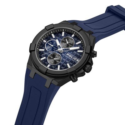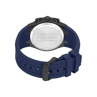 This Police watch has a case made of stainless steel with a diameter of 42 mm and is fitted with a rubber band. Inside the case lies a Seiko movement and the watch features a Mineral crystal.
