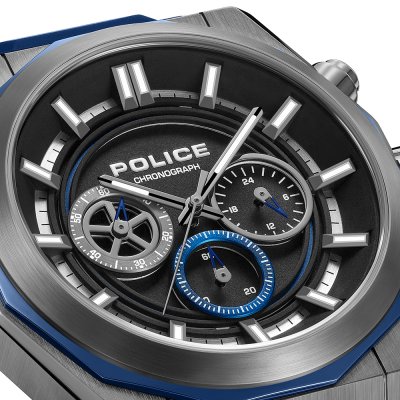 This Police watch has a case made of stainless steel with a diameter of 46 mm and is fitted with a rubber band. Inside the case lies a Seiko Instruments Inc. movement and the watch features a Mineral crystal.