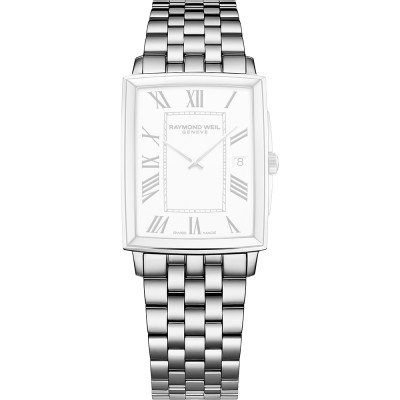 This Raymond Weil watch strap is made of stainless steel and is attached to the watch by means of pushpins. The band has a width of 20 mm and is closed by means of a butterfly clasp with push buttons. The strap has no straight mount which means that this strap is only suitable for the watches listed below.