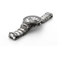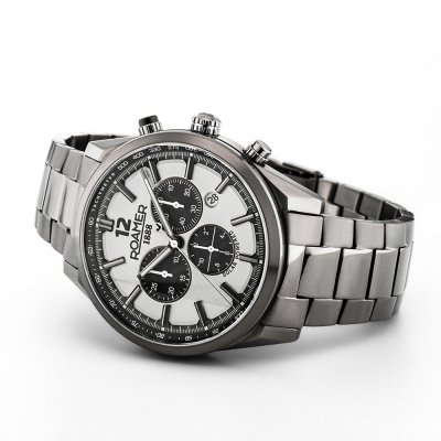 This Roamer watch has a case made of stainless steel with a diameter of 43.5 mm and is fitted with a stainless steel band. Inside the case lies a Casio movement and the watch features a Sapphire crystal.
