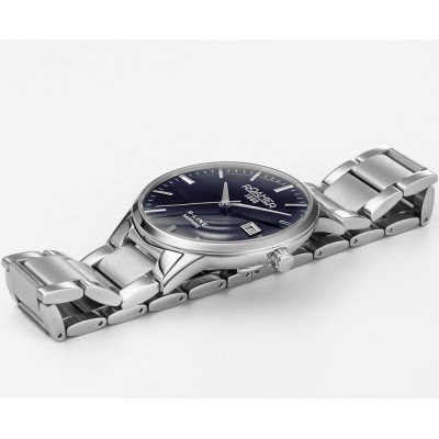 This Roamer watch has a case made of stainless steel with a diameter of 43 mm and is fitted with a stainless steel band. Inside the case lies a Ronda movement and the watch features a Sapphire crystal.