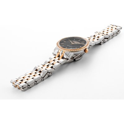 This Roamer watch has a case made of stainless steel with a diameter of 28 mm and is fitted with a stainless steel band. Inside the case lies a Ronda movement and the watch features a Sapphire crystal.