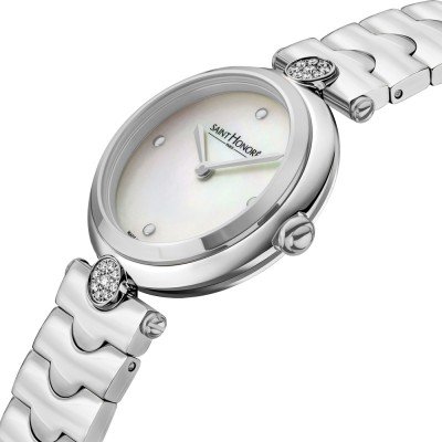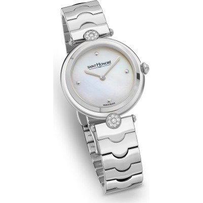 This Saint Honoré watch has a case made of stainless steel with a diameter of 30 mm and is fitted with a stainless steel band. Inside the case lies a Ronda movement and the watch features a Mineral crystal.