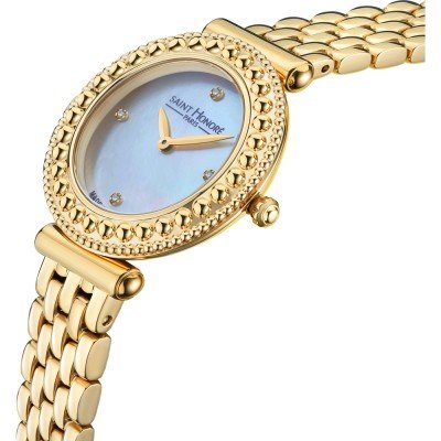 This Saint Honoré watch has a case made of stainless steel with a diameter of 29 mm and is fitted with a stainless steel band. Inside the case lies a Ronda movement and the watch features a Mineral crystal.